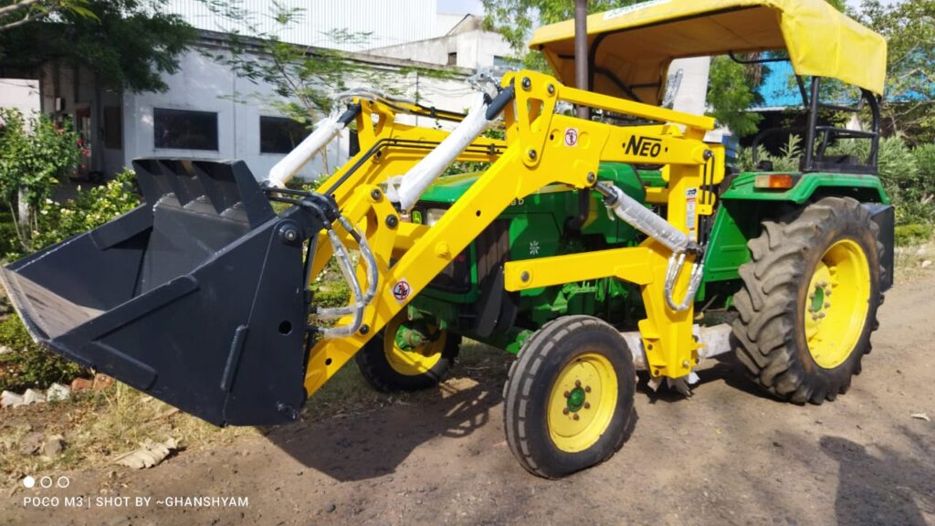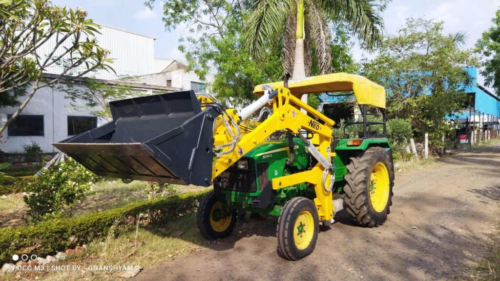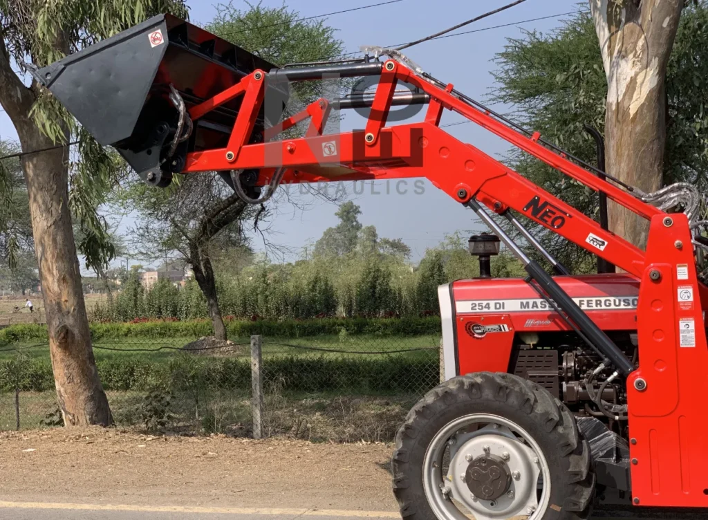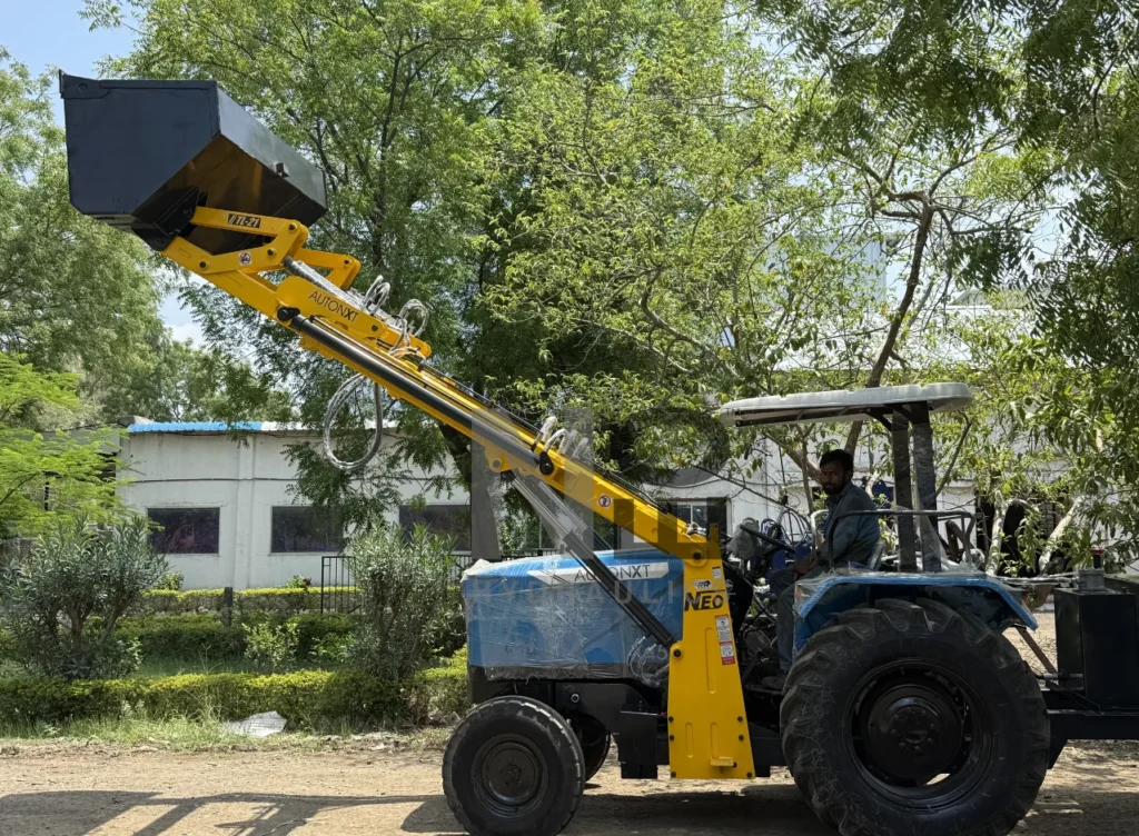 The NEO Farm+ Loader is a robust and versatile attachment designed for tasks in agricultural sector and provide farmers with an econmical solution to their daily problems. It’s engineered to attach seamlessly to a variety of tractors, enhancing their functionality to lift, carry, and manipulate a wide range of materials. With a focus on durability and efficiency, the Farm+ Loader features a powerful hydraulic boom with a large-capacity bucket, capable of handling tasks such as loading trolleys, managing agricultural produce, among other things. Its ease of use and adaptability make it an invaluable tool for increasing productivity and streamlining operations across various applications